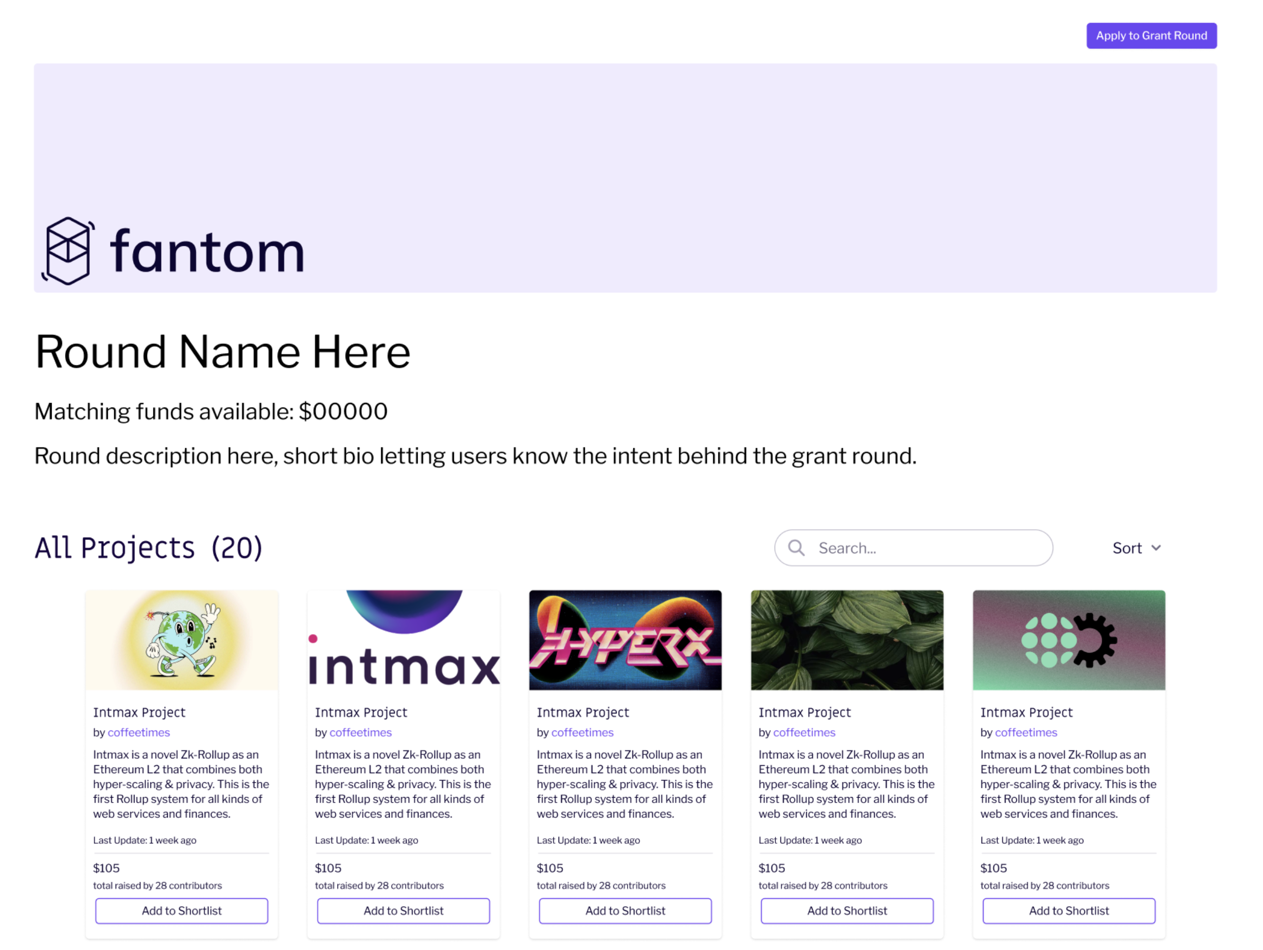 You will see all the accepted projects within the round. ***Note: this page will display as below only when the donation/voting period has opened. Before that time, the home page will have a different interface.***
