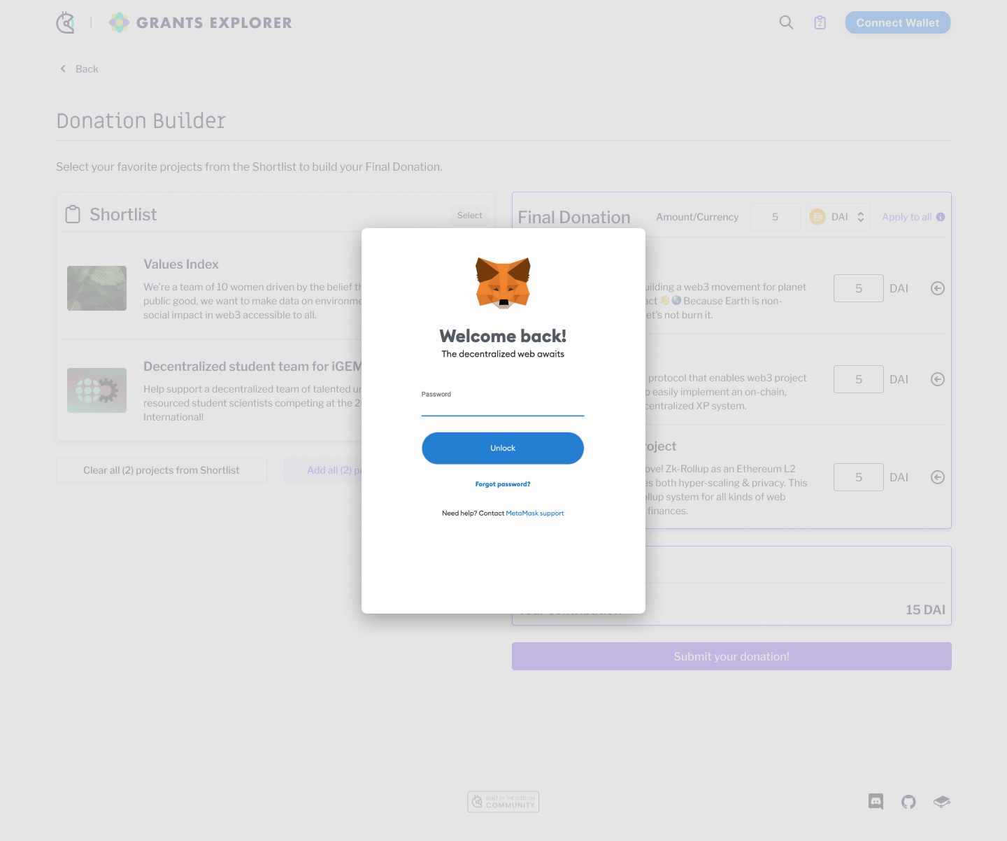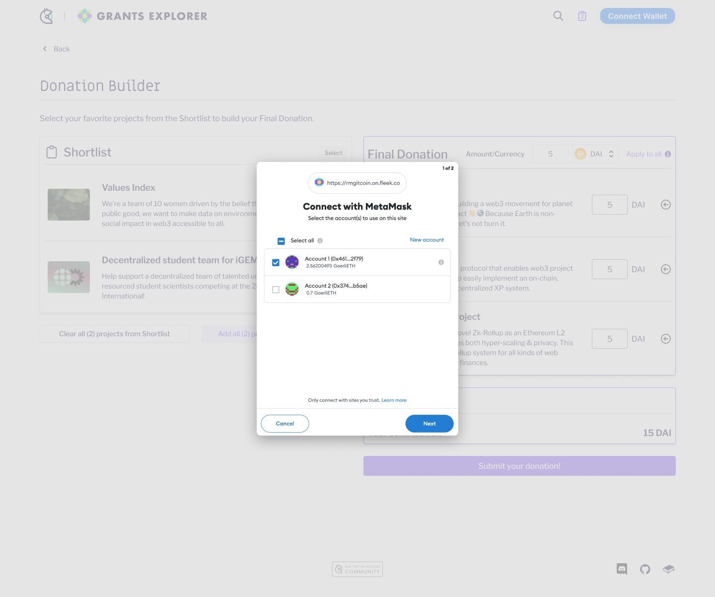 * Choose from a list of wallets to connect to