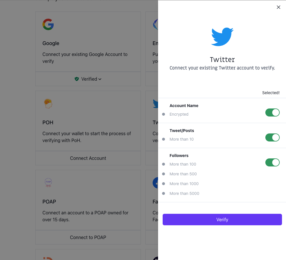 Step 3: Select the toggles you want to use for your stamp then click **Verify.**