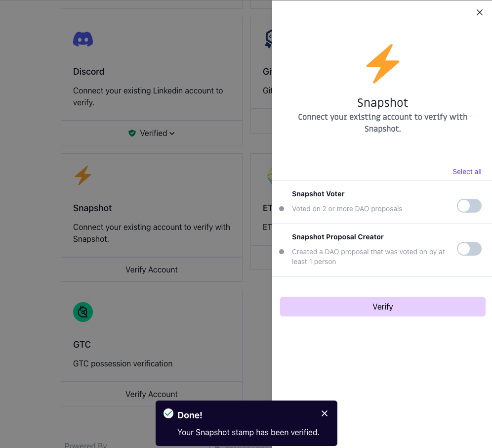 Step 2: Click **Verify Account** on the Snapshot stamp card.